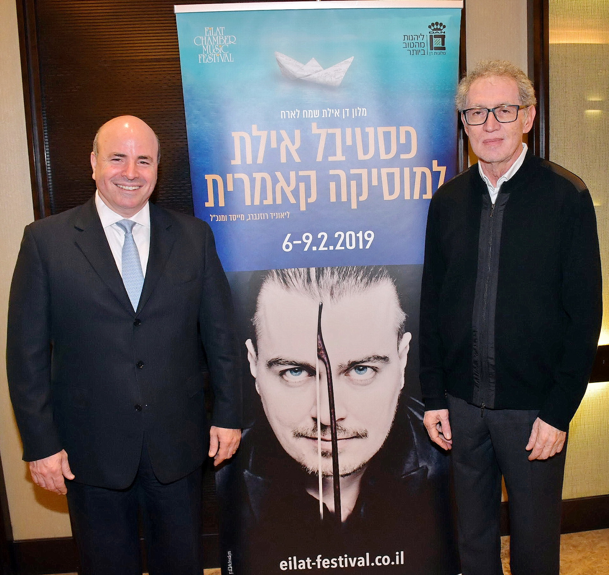 בתמונה (מימין לשמאל): לאוניד רוזנברג, מנכ"ל פסטיבל אילת למוסיקה קאמרית ורונן ניסנבאום, מנכ"ל מלונות דן.